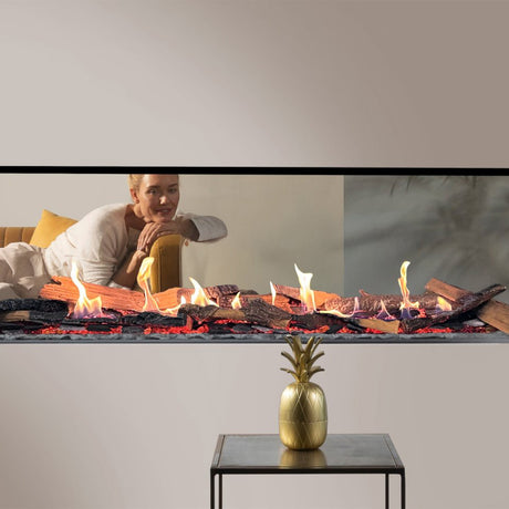 Icon Fires Double Sided Slimline Firebox 1100 met Slimline 800 Brander