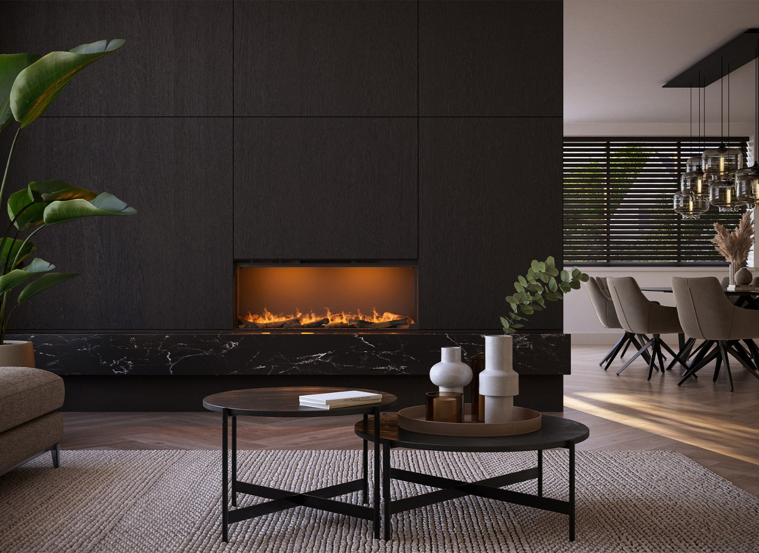 De nieuwe e-Slim Linear 1200/450 l van Faber; Een sfeervolle en stijlvolle toevoeging aan uw woonkamer. De elektrische haard beschikt over bovenverlichting voor extra verlichting op het vuur, welke in is te stellen in vijf verschillende kleuren. Zo is er voor ieder moment een geschikt sfeerlicht in te stellen. Het bedienen van de haard wordt u zeer gemakkelijk gemaakt door de bijgeleverde afstandsbediening en de app.