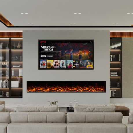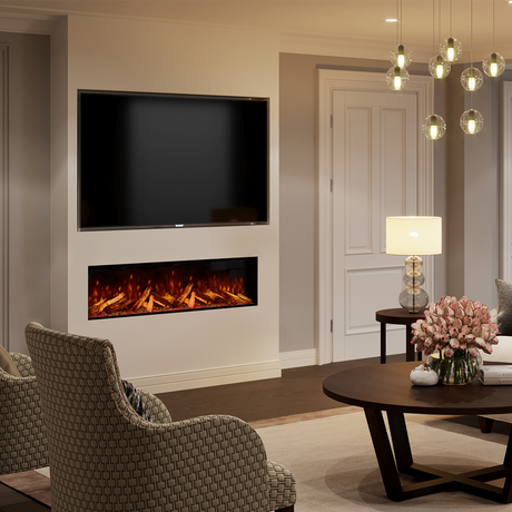 Door het strakke design zijn elektrische inbouwhaarden bijzonder populair in cinewalls onder de tv. Ze worden randloos ingebouwd en vormen zo één geheel met de wand of het meubel.