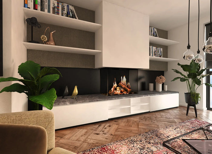 Het juiste formaat is bepalend voor de uitstraling. Houd rekening met de breedte van de muur, de grootte van de televisie en de afmetingen van de sfeerhaard. Zo creëren we samen een cinewall die perfect in balans is. - Selecteer de gewenste sfeerhaard
