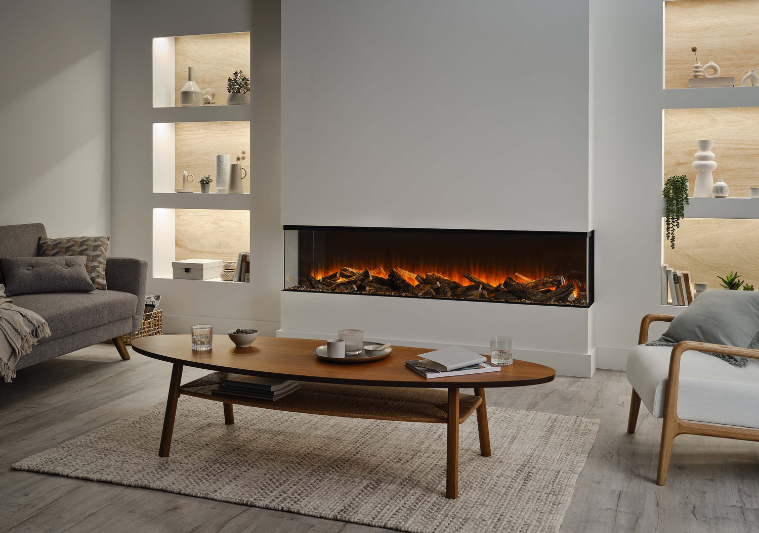 Dankzij de flexibele inbouwmogelijkheden – front, hoek of driezijdig – integreer je de New Forest 1900 in zowel een moderne cinewall als in een maatwerk wandopstelling. Door de royale breedte is de haard een ideaal statement piece in grotere woonruimtes.