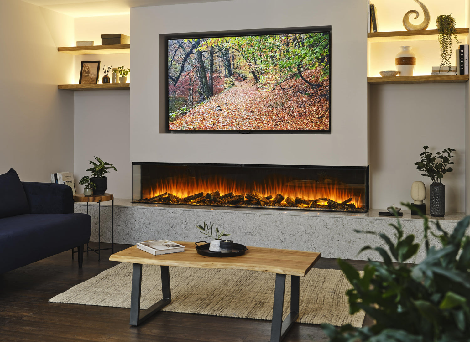 Dankzij de veelzijdige inbouwmogelijkheden – front, hoek of driezijdig – integreert de New Forest 2400 moeiteloos in grote cinewalls, wandmeubels of maatwerkopstellingen. Het royale formaat maakt deze haard ideaal voor ruime woonkamers, horeca-interieurs of luxe projecten waar sfeer en design centraal staan.