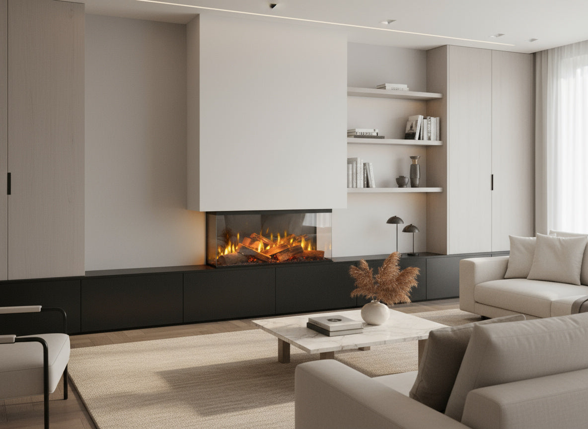 Op 3 manieren in te bouwen: fronthaard, hoekhaard (2-zijdig) én als 3-zijdige haard
