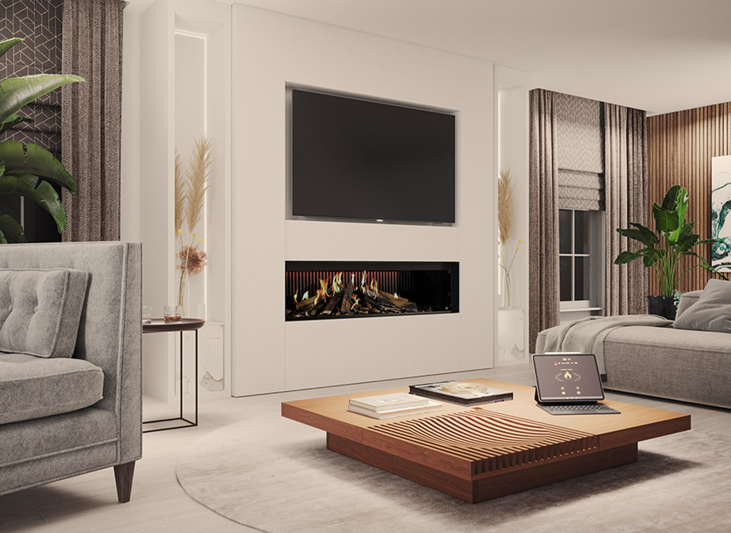 Met zijn brede en lage vormgeving past de Virtuo 180 Evolve uitstekend in grote cinewalls en moderne wandopstellingen. De haard vormt een luxe en stijlvolle blikvanger in elke ruimte.