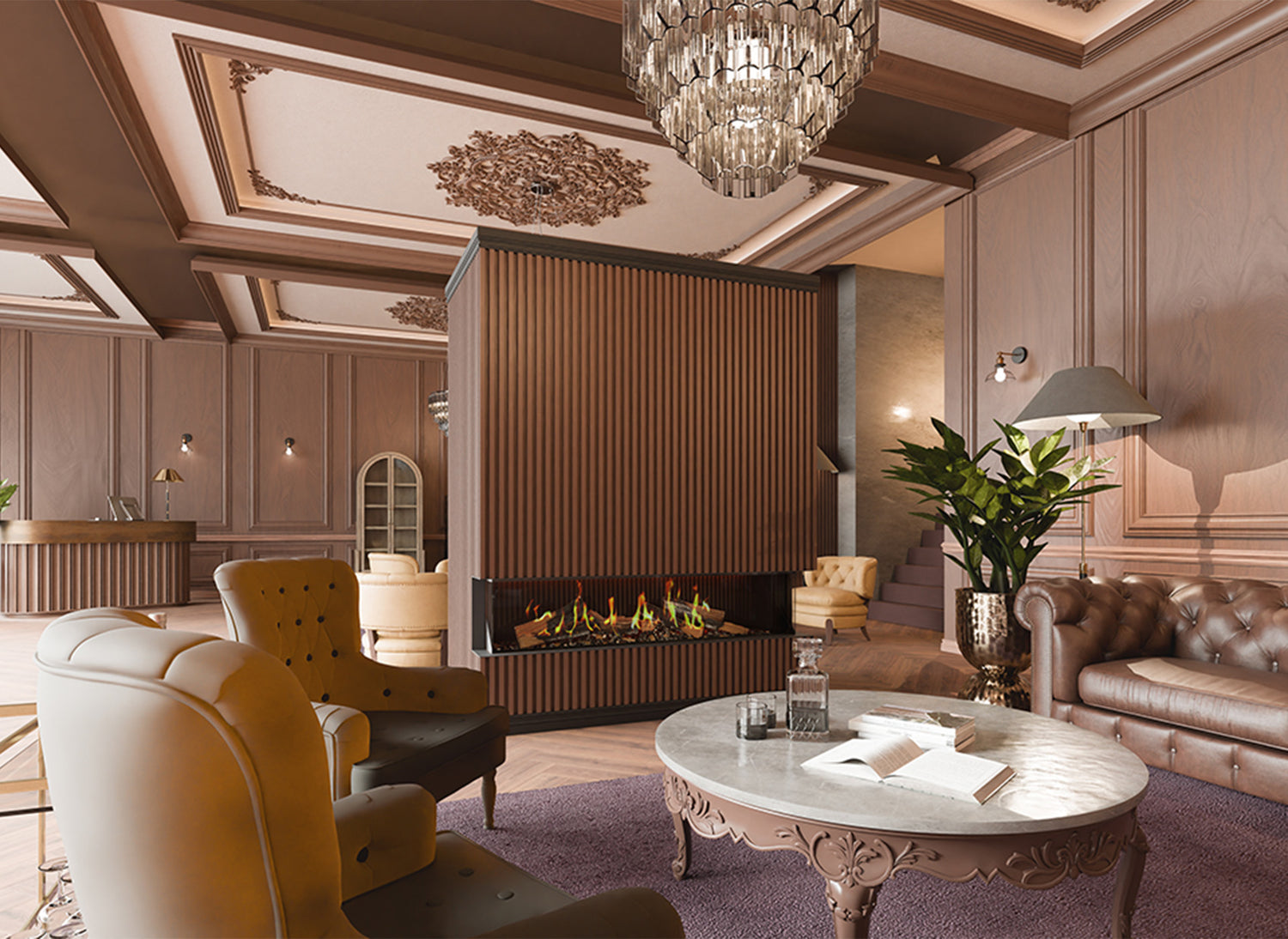 Door het brede ontwerp past de Virtuo 180/3 perfect in grote cinewalls en ruime woonkamers. Het vuurbeeld vult de hele voorkant én beide zijkanten, waardoor de haard een echte blikvanger wordt in je interieur.
